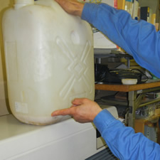 すべてをポリタンクに入れて、ぬるま湯を注ぐ。(写真【6】)